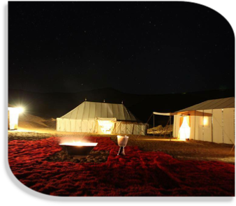 The guided ,everyday tour from Fes to desert and Marrakech continues today by exploring Merzouga desert. You will visit museum of Nomads in Hassilabiad, we enjoy Gnawa musicians in Khamlia village and we explore Erg Chebbi desert. Then later today you prepare for camel ride in dunes. We reach Merzouga camp , you may climb high dunes to watch the desert sunset. The traditional dinner will be served at camp. You enjoy drum music around a campfire and then we stay overnight under Sahara tents in Merzouga.